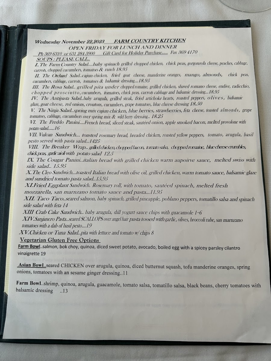 Farm Country Kitchen Menu